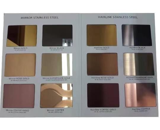| Surface | Ti Golden Hairline, Ti Golden Mirror, Anti-Ti Golden Hairline/Mirror Golden Rose Hairline, Golden Rose Mirror,Anti-Ti Golden Rose Hairline/Mirror Blue Hairline, Blue Mirror,Anti-Ti Blue Hairline/Mirror Bronze Hairline, Bronze Mirror,Anti-Ti Bronze Hairline/Mirror Champagne Hairline, Champagne Mirror,Anti-Ti Champagne Hairline/Mirror |